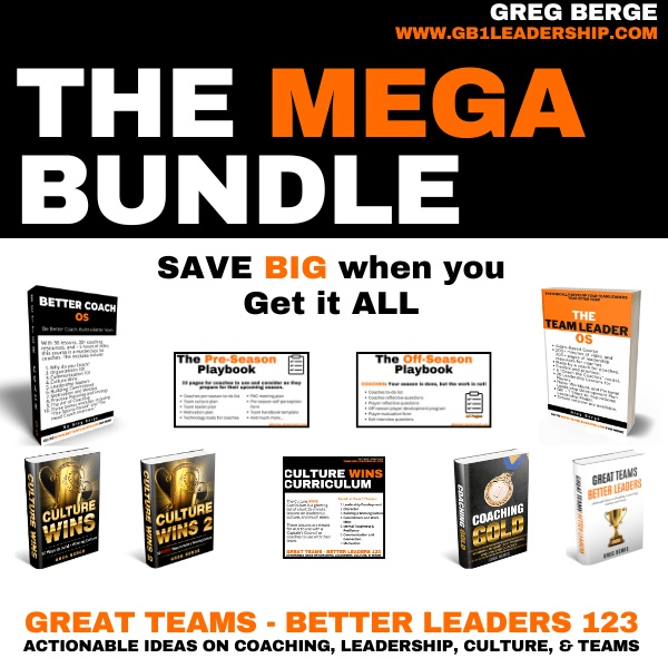 But first, what is the best deal on the Internet for Coaches? The MEGA Bundle. What do you get? Team Leader OS, Better Coach OS, Culture Wins Curriculum, All Four Books, and More! Get it now, with a special discount: 25% off 🚨. Use the Coupon Code = GBSAVE25!