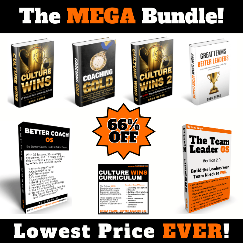 What is included? The Team Leader OS, Better Coach OS, the Culture Wins Curriculum, Culture WINS, Culture WINS 2, Coaching Gold, Great Teams Better Leaders, and the Pre-season and Off-season Playbooks. Get it all for only $119!